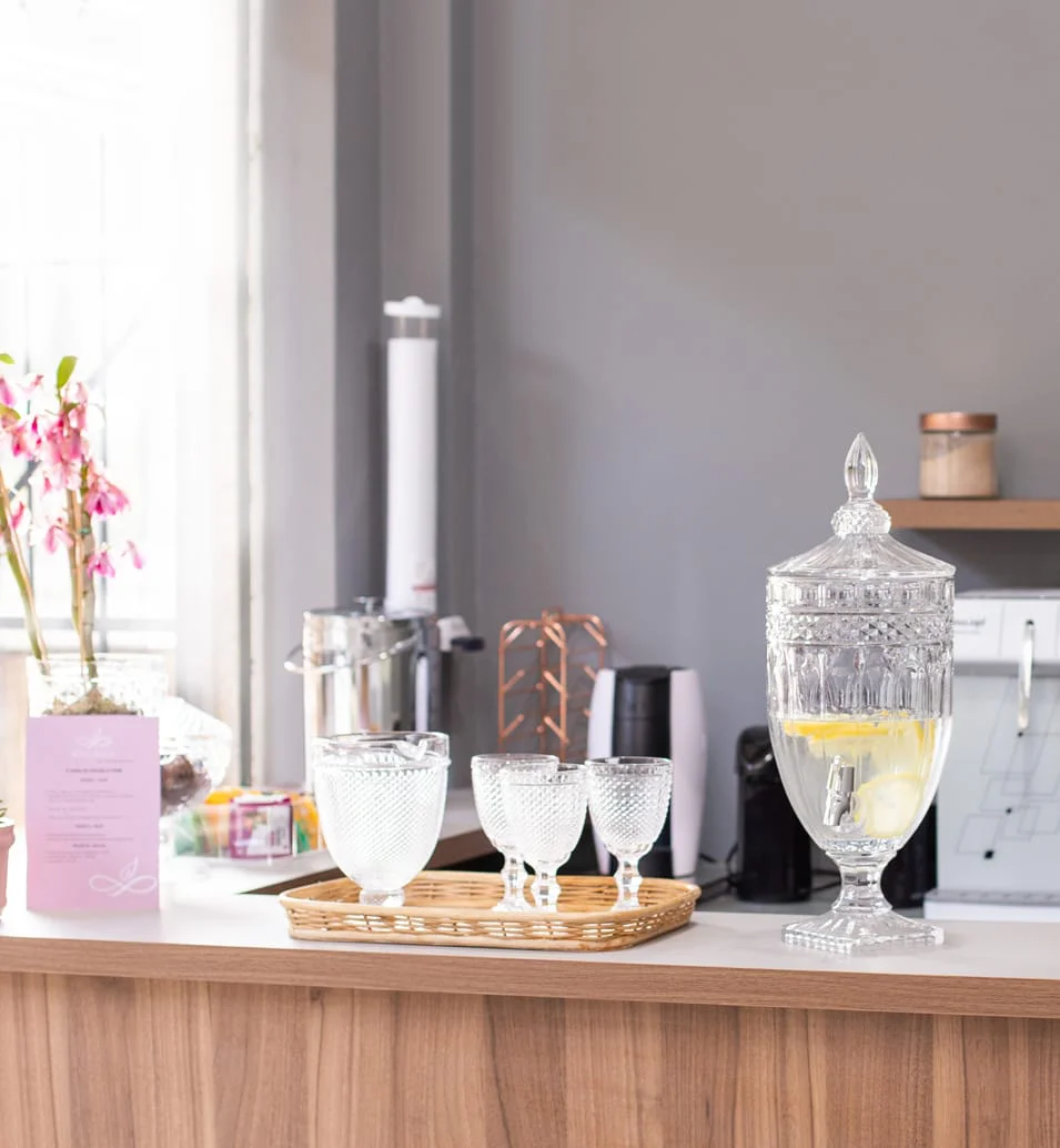 Estacionamento com 5 vagas; Recepção aconchegante com café e outras bebidas servidos durante todo o dia; 5 estações de trabalho para cuidados com cabelos e maquiagem; 5 estações de trabalho para cuidados com unhas; 4 salas para procedimentos faciais, corporais, massagens e demais serviços estéticos.Além de um cardápio exclusivo com saladas, lanches, doces e até mesmo almoço.